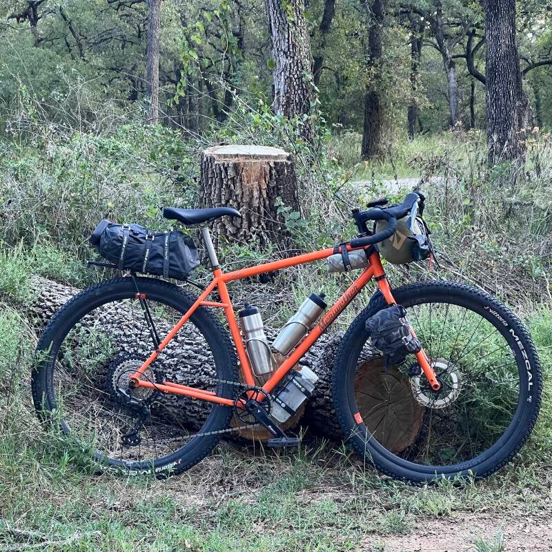 I was able to get the bike completely loaded for an overnight camp, with all shelter, cook set, and food. I was even able to pedal around a little to test the handling...which was fantastic. More proof-of-concept success. For the less strenuous bikepacking I love, this bike is going to be perfect.