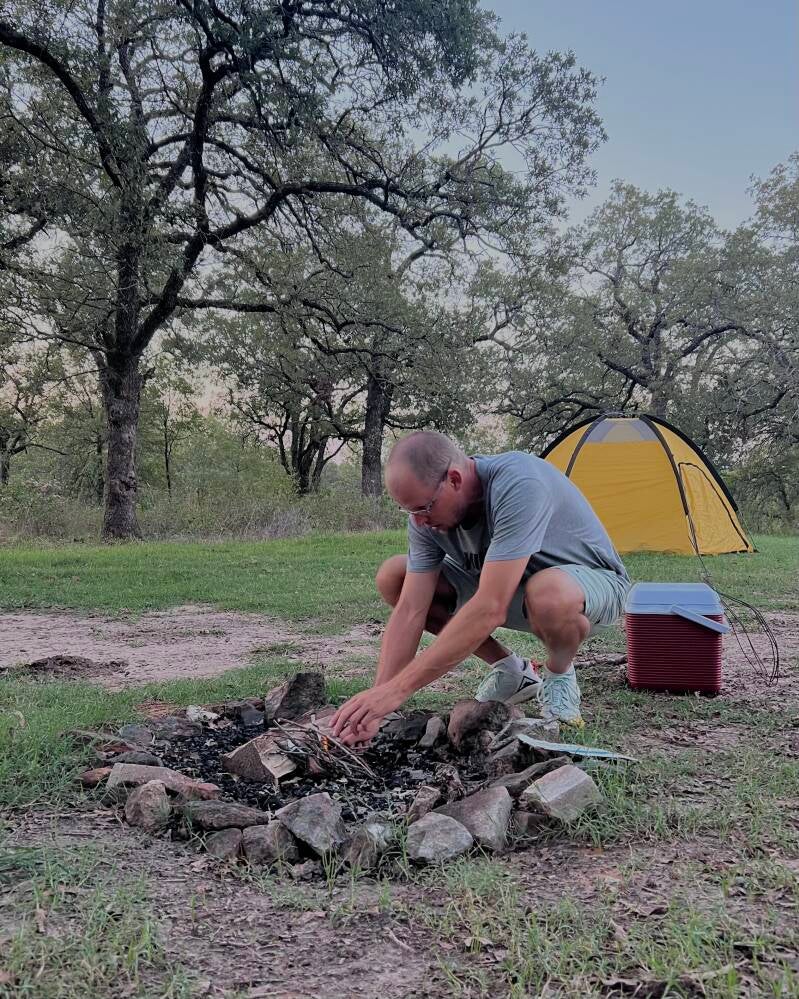 Even with the shift to a more social camping experience, things were going well. My buddy took charge of fire building.