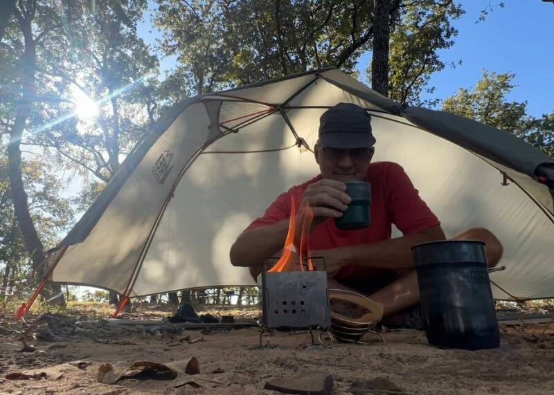 On this Thursday, I just rambled around in the State Park. There was no planned route. Unconsciously, I knew I'd visit my favorite spots, but in no particular order. The only plan was to brew coffee, and use the stop to attempt to set up my tent's rainfly like a tarp, without the inner floor and bug net.